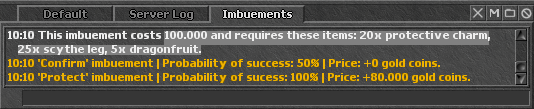 • 'Confirm' para confirmar o Imbuiment (com uma certa chance de falhar e perder seus itens)